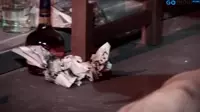 As the patrolling nympho roamed the streets, her tight fishnet tights straining against her body as she hunted for fresh meat, she could feel her pussy grow hot with anticipation.Spotting a man in a hat, struggling on his luck, the nympho's eyes gleamed with devious intent as she approached him.With each step, her high heels echoed loudly against the concrete, drawing attention from any nearby men who would quickly follow suit, their erections growing at the mere thought of this sex-starved creature who had wandered into their territory.The nympho stood before the first helpless man, and her piercing gaze seemed to command him to obey.As she bent down on her knees in front of his crotch, her own tits heaving with each breath, he couldn't help but let out a loud sigh as her warm mouth enveloped his swollen cock.The taste of precum was intoxicating, and her hand slid up and down the shaft in a steady rhythm, her other hand busy fondling her own engorged nipples.Suddenly, another man joined the fray, his hard cock straining against his pants as he watched the nympho pleasure the first man.With a hungry glance in their direction, she gestured for them both to approach, and within moments, the pair of men found themselves sandwiched between her legs.The patrolling nympho expertly manipulated their cocks with her skilled tongue and fingers, feeling each throb of climax that grew closer as they moaned in ecstasy.As the trio's bodies intertwined, the nympho demonstrated her expertise at providing relief to these unfortunate men on the city streets.Her pussy ached for attention, but she would have to wait until another time when it would be filled with the cums of multiple guys.The sight of their precum flowing like rivers down her throat fueled her desire even more, leaving them both panting and desperate as she expertly suckled them dry.Throughout the afternoon and into the night, the nympho continued her wicked adventures on her patrol.She encountered many more homeless guys who were in dire need of pleasure, and with each new encounter, the trios that formed seemed more eager than ever to indulge in her carnal desires.The patrolling nympho would devour these desperate men's cocks, feeling her own clit throb and pulse with every thrusting motion she made between them.The men moaned ecstatically as their cocks were stimulated by the expert tongues, mouths, and fingers that were lavished upon them, their precum flowing like rivers down her throat, which in turn fueled her own growing orgasm.The sensation of each climax that filled her mouth or pussy would send electric shocks through her body, further driving her hunger for cock, eager to be satisfied by as many homeless guys she encountered on the city streets.As long as there was a lonely dick yearning for touch on those dirty streets, the patrolling nympho could not satiate herself, always ready to aid these unfortunate men in achieving their best orgasms of their lives, and living up to her glorious title Patrolling Nympho Checking Homeless Guys.